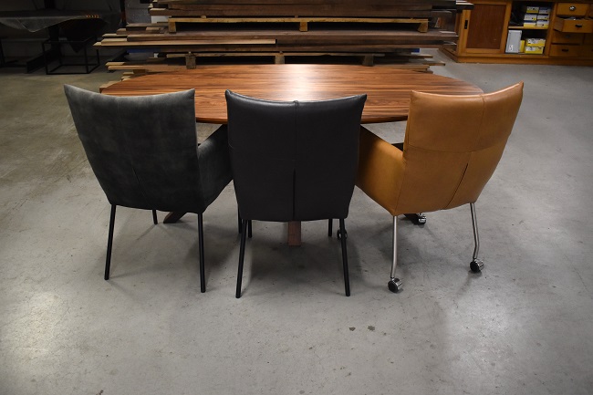 3 verschillende eetkamerstoelen model Pisa 1 met parketwielen, 1 met- en 1 zonder armleuningen voor € 695,-