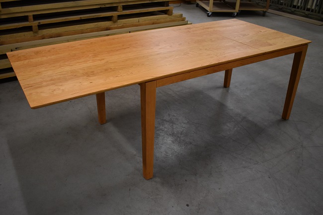 Uitschuiftafel Barcelona in massief kersenhout met smalle tafelregel voor stoelen met armleuningen