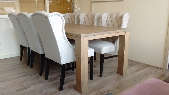 – als laatste enkele showstoel model Provence in stof Inari met houten poten