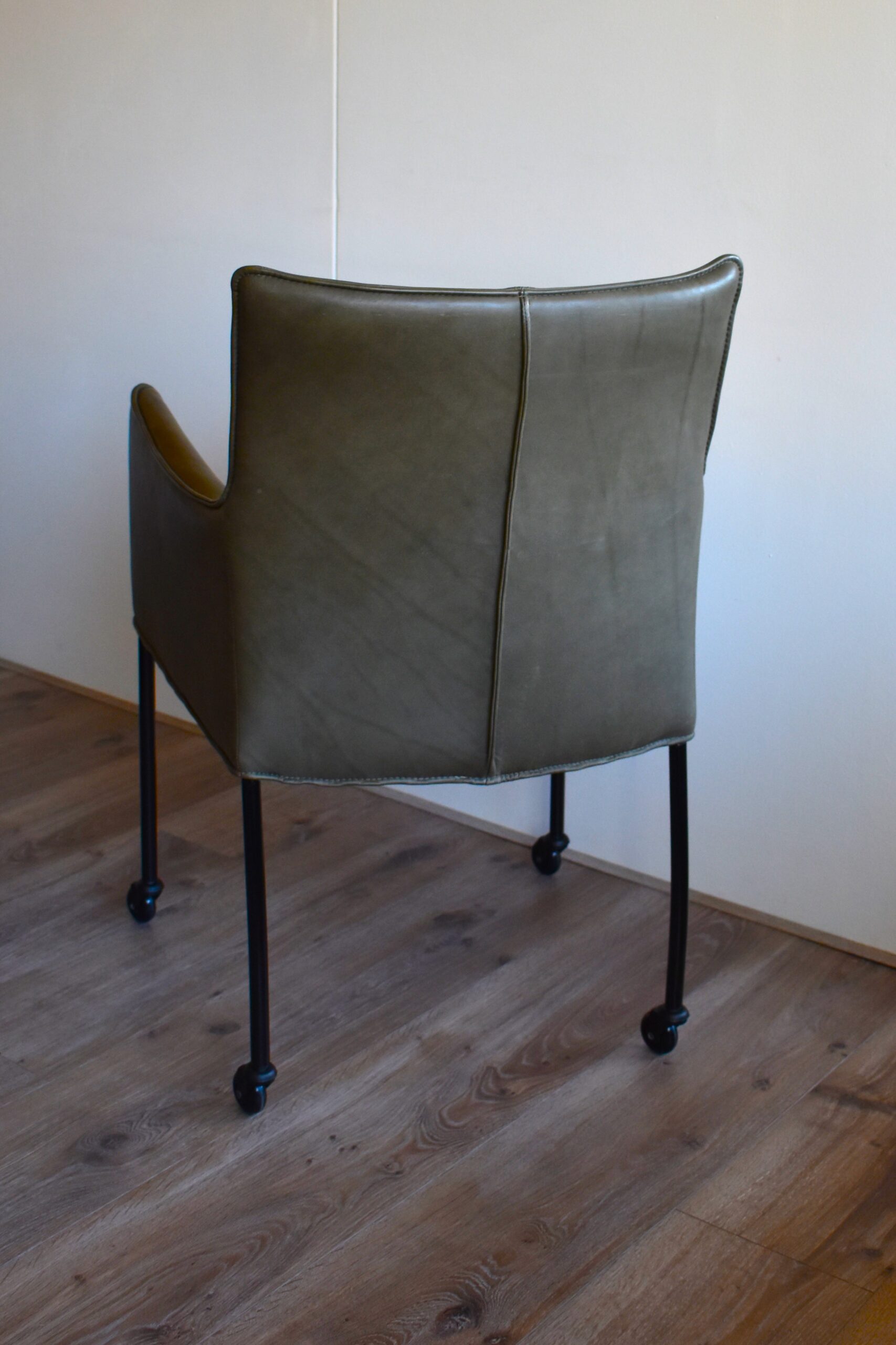 Cabana 1 leren eetkamerstoel van Bree’s New World met skatewielen in donkergroen Gogain leer voor € 239, –