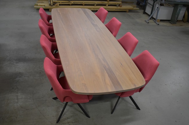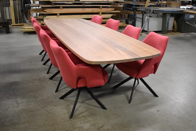 Draaibare eetkamerstoel met auto return model Andes in roze stof